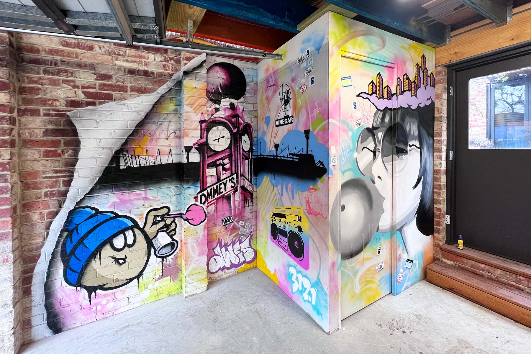 We work Australia-wide and can create both painted and digital print murals for most surfaces. You'll find our murals in offices, homes, schools, on buildings, in laneways, in stores, in restaurants and bars, at events, in warehouses, in parks... everywhere. Click through below to explore some of our murals by type.