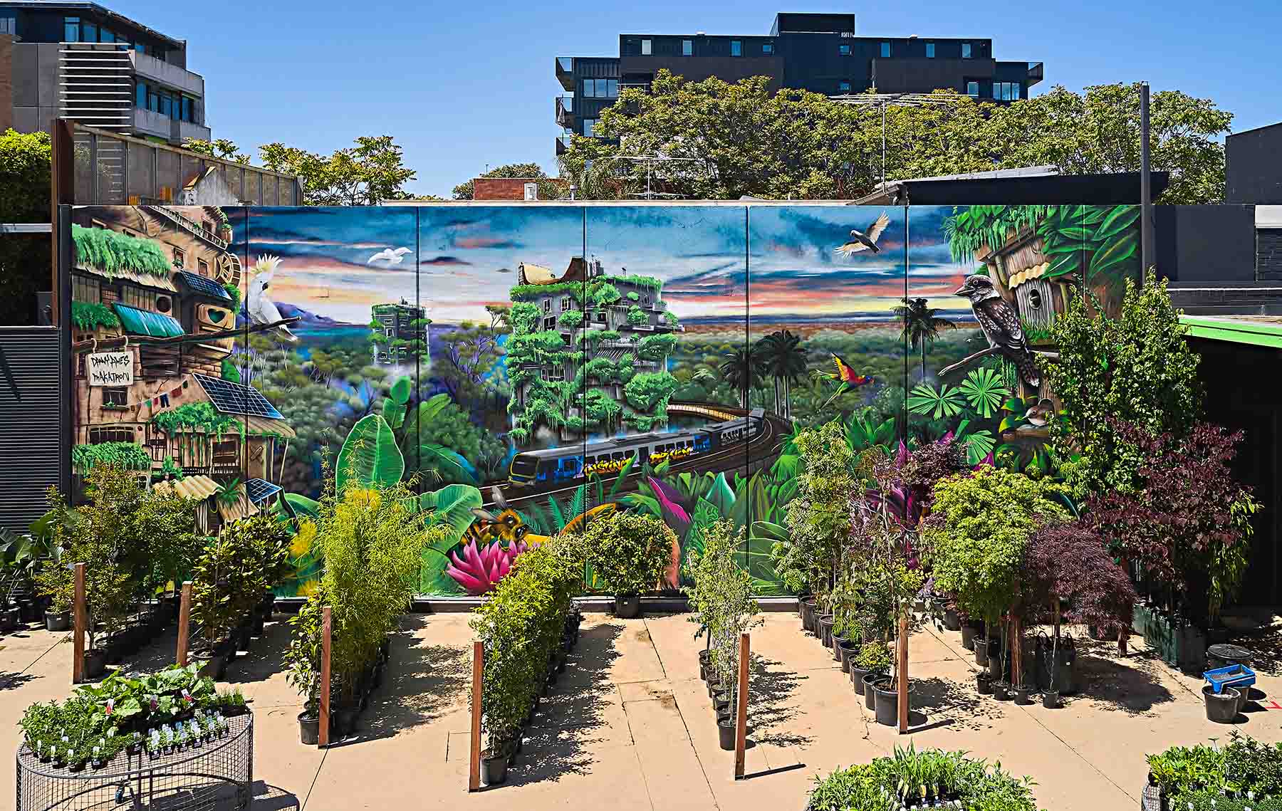We work Australia-wide and can create both painted and digital print murals for most surfaces. You'll find our murals in offices, homes, schools, on buildings, in laneways, in stores, in restaurants and bars, at events, in warehouses, in parks... everywhere. Click through below to explore some of our murals by type.