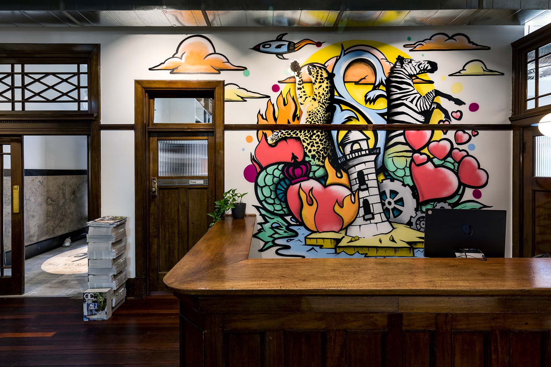 We've been painting commissioned murals across Sydney since 2012 — in corporate offices, hospitality venues, retail spaces, residential homes and on public walls. Every mural is designed to brief and delivered on time.